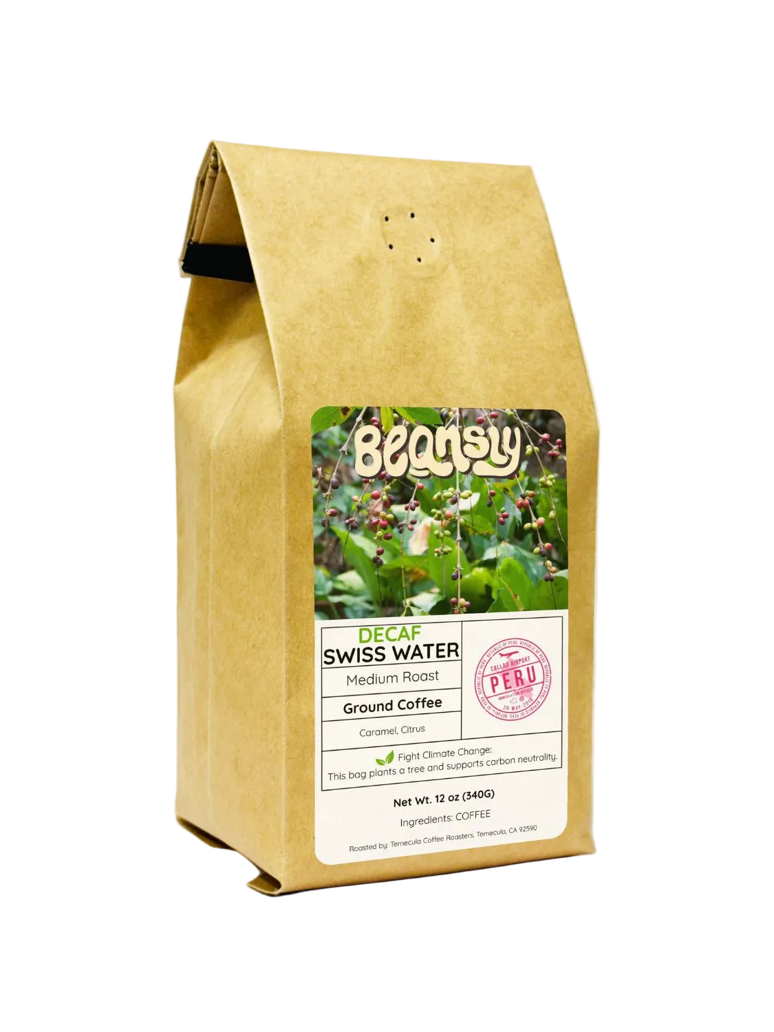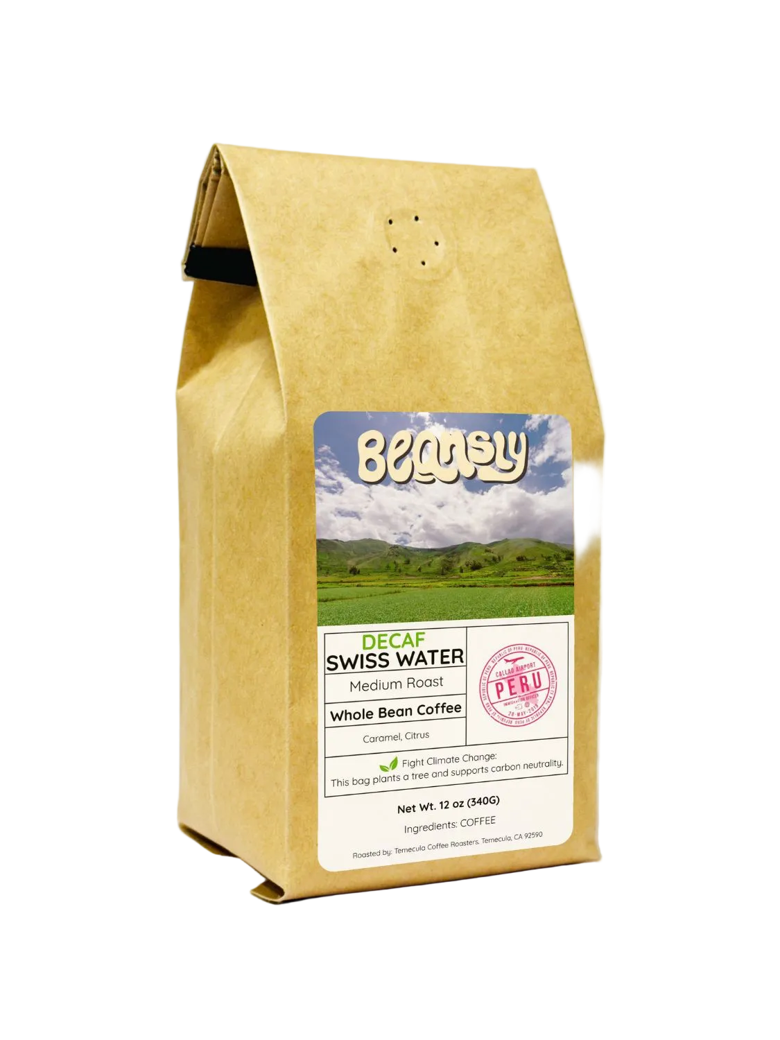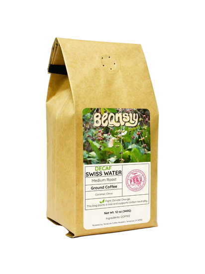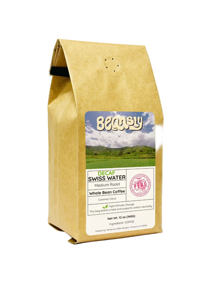 Decaf done right. Our Swiss Water® Decaf comes from the high mountains of Peru and keeps all the flavor without the caffeine. Smooth, rich, and naturally sweet, this medium roast brings notes of dark chocolate, almond, caramel, and a gentle citrus lift — all preserved through the chemical-free Swiss Water® Process.